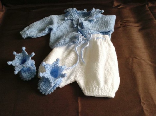 Mrs Periwinkle is proud of her work and can produce totally unique baby knits to your specifications. Here are some examples of her work with prices as a guide. Click on the image to enlarge and play as a slideshow to view all of the items.